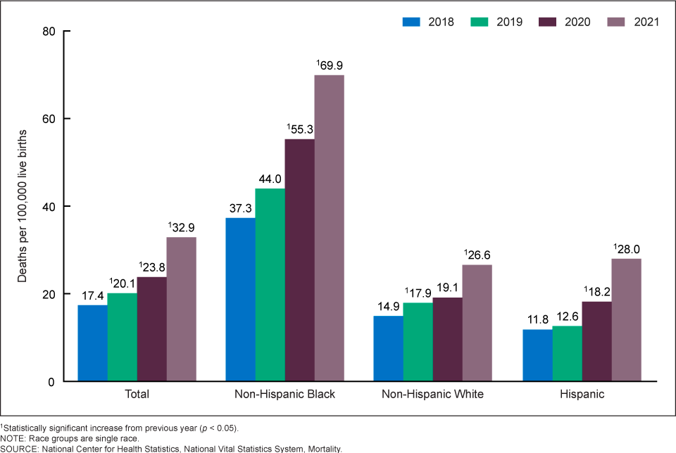 - https://www.npr.org/sections/health-shots/2023/03/16/1163786037/maternal-deaths-in-the-u-s-spiked-in-2021-cdc-reports#:~:text=The%20U.S.%20rate%20for%202021,deaths%20per%20100%2C000%20in%202020. ↩︎